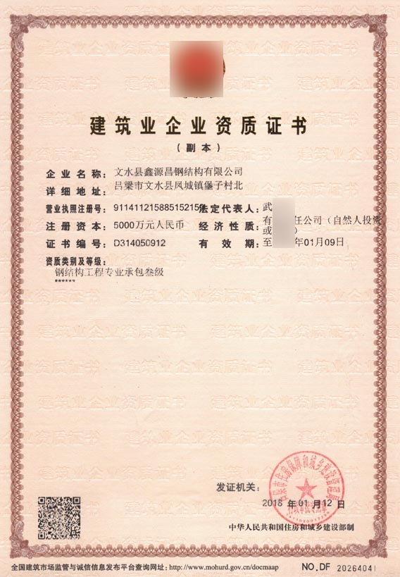 文水縣某公司鋼結構工程專業(yè)承包資質